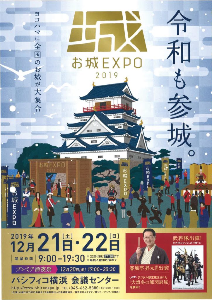 今週の土日、12月21日(土)、22日(日)に神奈川県横浜市のパシフィコ横浜で開催される「お城EXPO2019」に今年も安芸高田市が出展します。毛利三兄弟で三原市と北広島町との共同出展です。毛利元就、毛利三兄弟ゆかりの居城の解説講座や甲冑着付け体験、ご当地オリジナル商品の販売などがあります。関東地区会員の皆様は、お城・歴史好きの皆様はぜひ遊びにいかれてみてはいかがでしょうか。