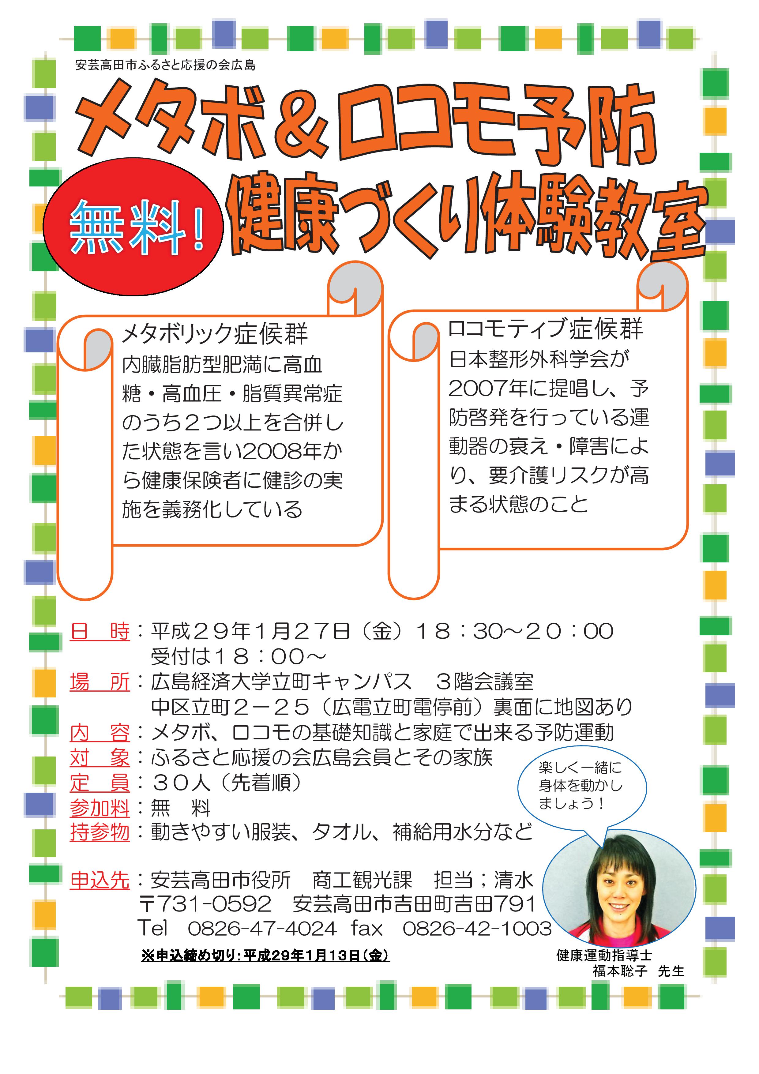 ふるさと応援の会広島企画「メタボ&ロコモ予防健康づくり体験教室」!!