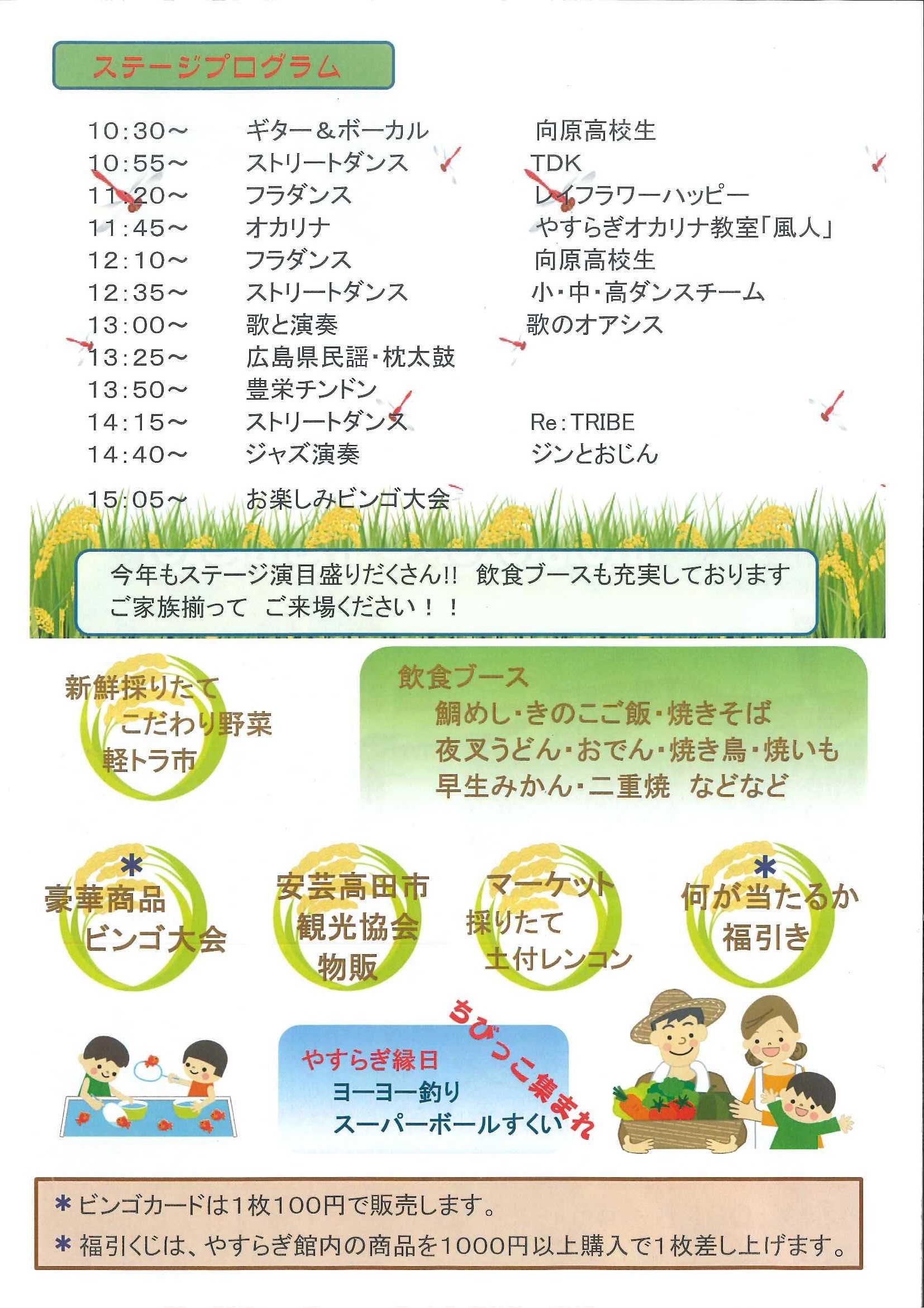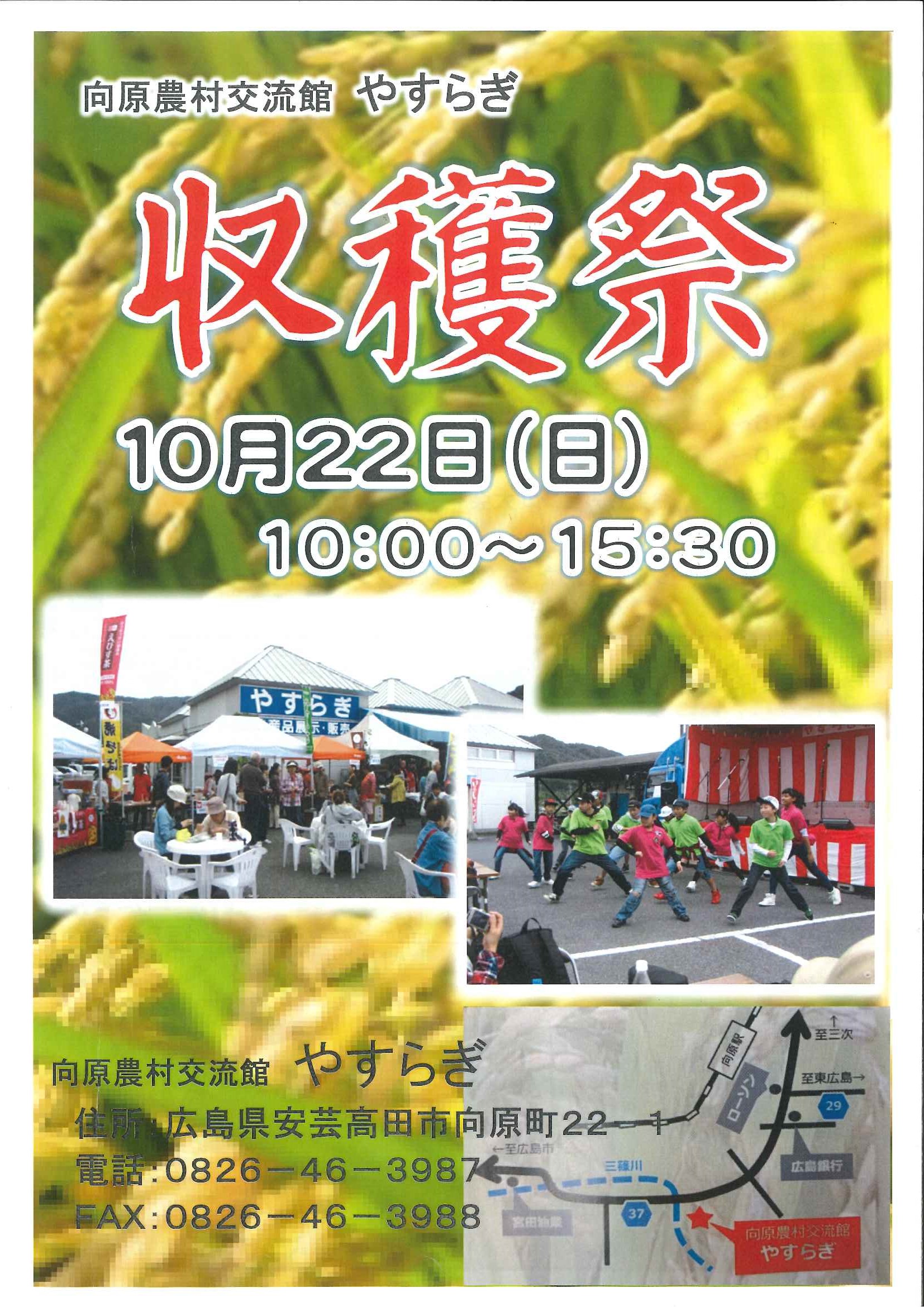 今週10月22日(日)に安芸高田市向原町で「やすらぎ収穫祭」が開催されます。