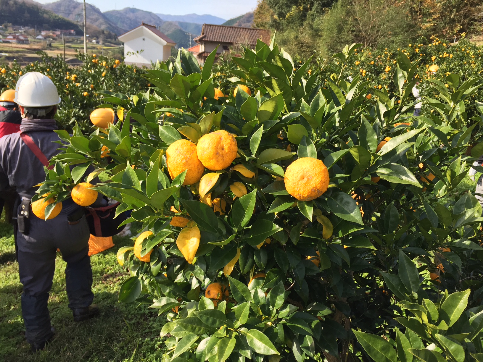 平成28年11月26日(土)、今年も安芸高田市ふるさと応援の会広島のイベント「川根柚子もぎ応援隊」が開催されました。心配していた天候も雨が降ることなく、当日は31名の方にご参加いただきました。今年の柚子は昨年よりもひとつの木に実っている数量が多く、たまに柚子の木のとげに苦戦しながらも、2,000㎏を超える収穫を行いました。お土産に「朝採り柚子ぽん酢しょうゆ」と収穫した柚子もいただき、川根を満喫してお帰りいただきました。来年度も開催がありましたら、ぜひご参加してみてください。