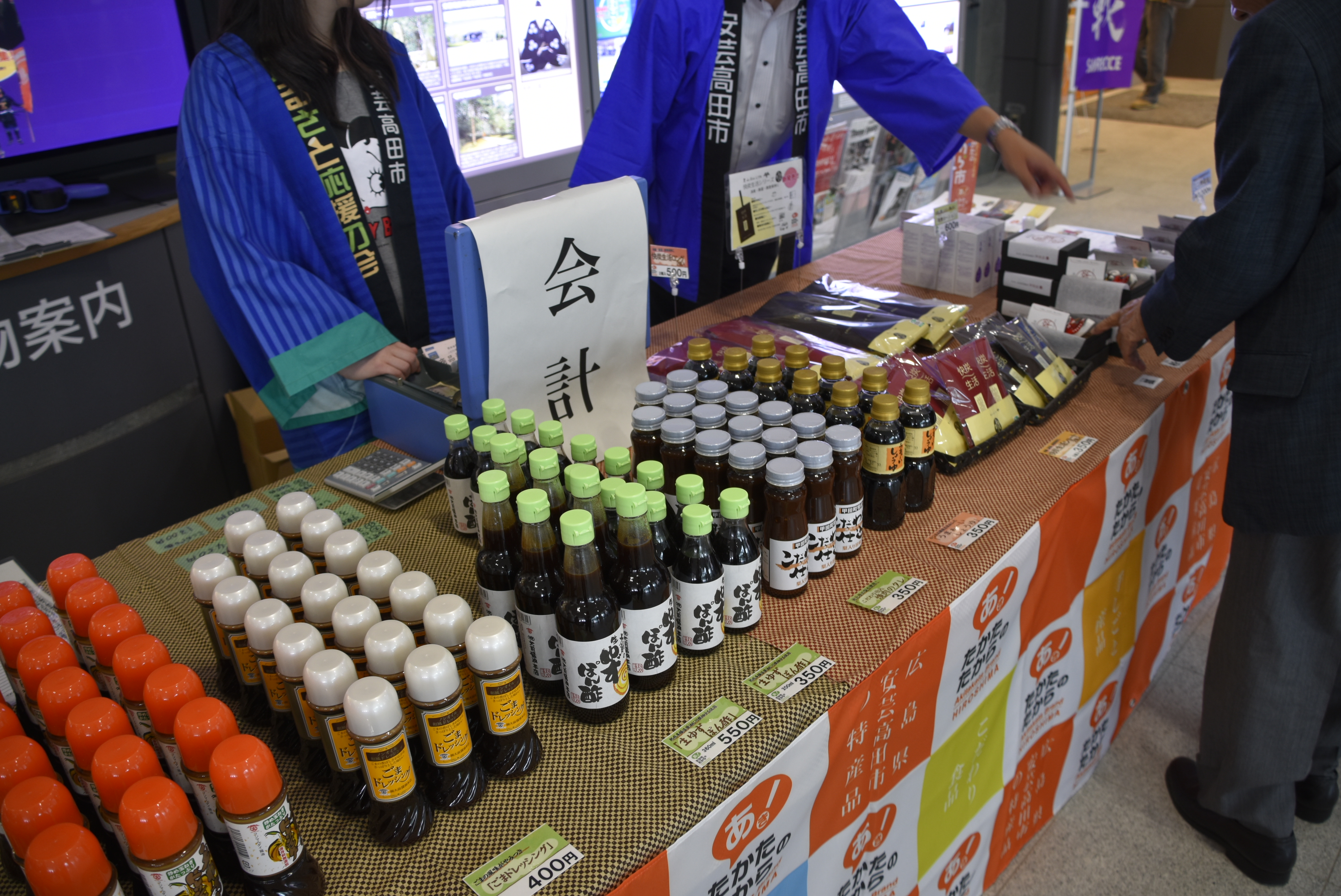 今日は、毛利元就のゆかりの地として山口県防府市と萩市の物産も販売してます。
