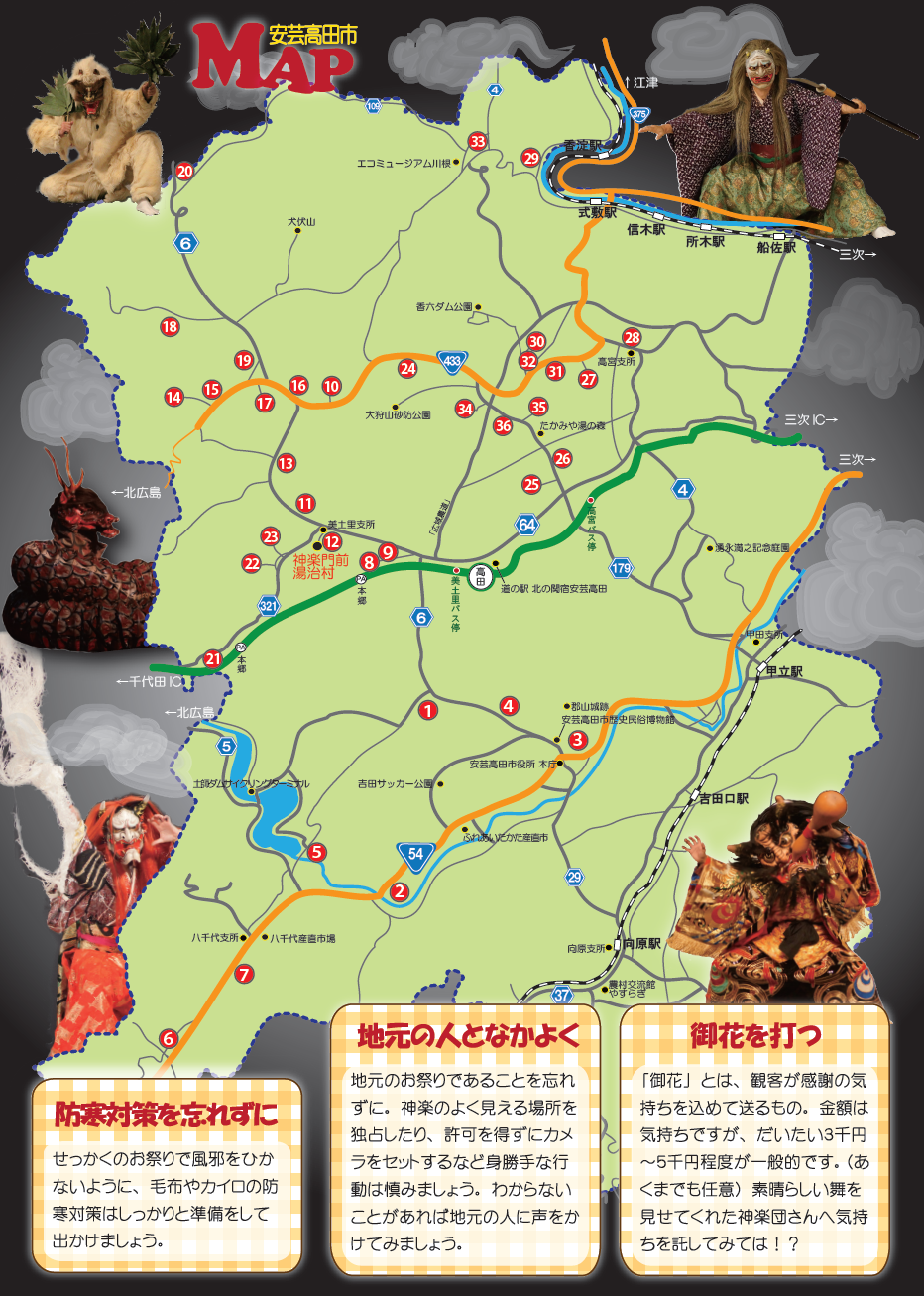 安芸高田市各地での奉納神楽の季節がやってまいりました~!市内22の神楽団さんたちが、一年の収穫、繁栄、を神様に感謝を