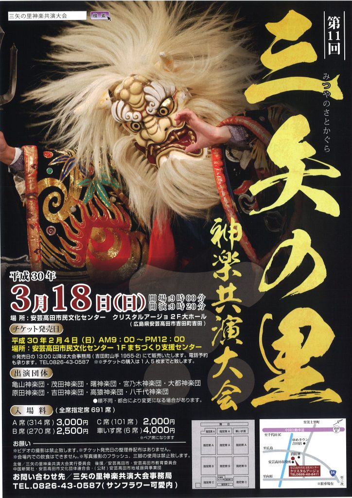 問合わせ:0826-43-0587(三矢の里神楽共演大会事務局(サンフラワー可愛内))