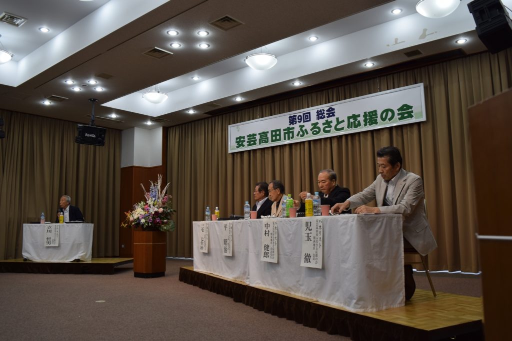 令和元年6月15日(土)に安芸高田市ふるさと応援の会第9回本部総会を開催いたしました。当日は第1部で各議案の承認をいただきました。議案の詳細は添付資料をご確認ください。そのほか記念行事として応援の会各地区代表者をパネリストにシンポジウムを開催し、これまでの人生経験からこれからの安芸高田市についてご意見をいたいだきました。また、アトラクションとして地元向原高校ダンス部の皆さんによるフラダンスの披露、関東地区役員で吉田町出身の歌手、真木洋介氏によるミニコンサートを開催いたしました。今回の総会での承認いただいた計画をもとに、今期もいろいろとイベントを企画してまいりますので、ぜひご参加をお願いいたします。