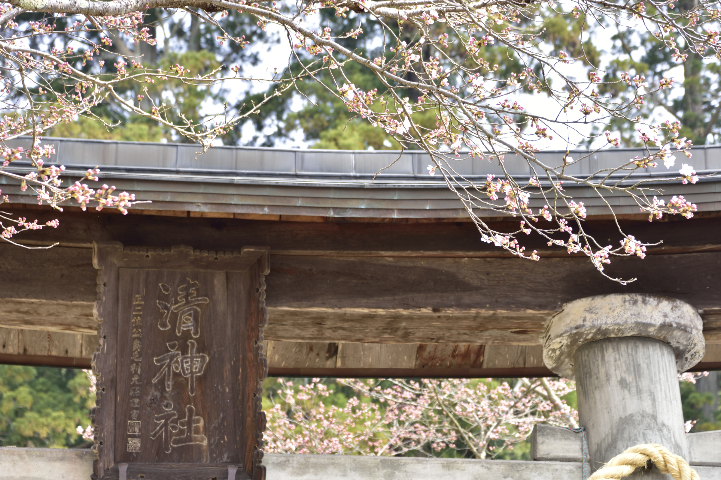 先日、外回りの用事の帰りに清神社に桜の様子を見にいってきました。(^^)