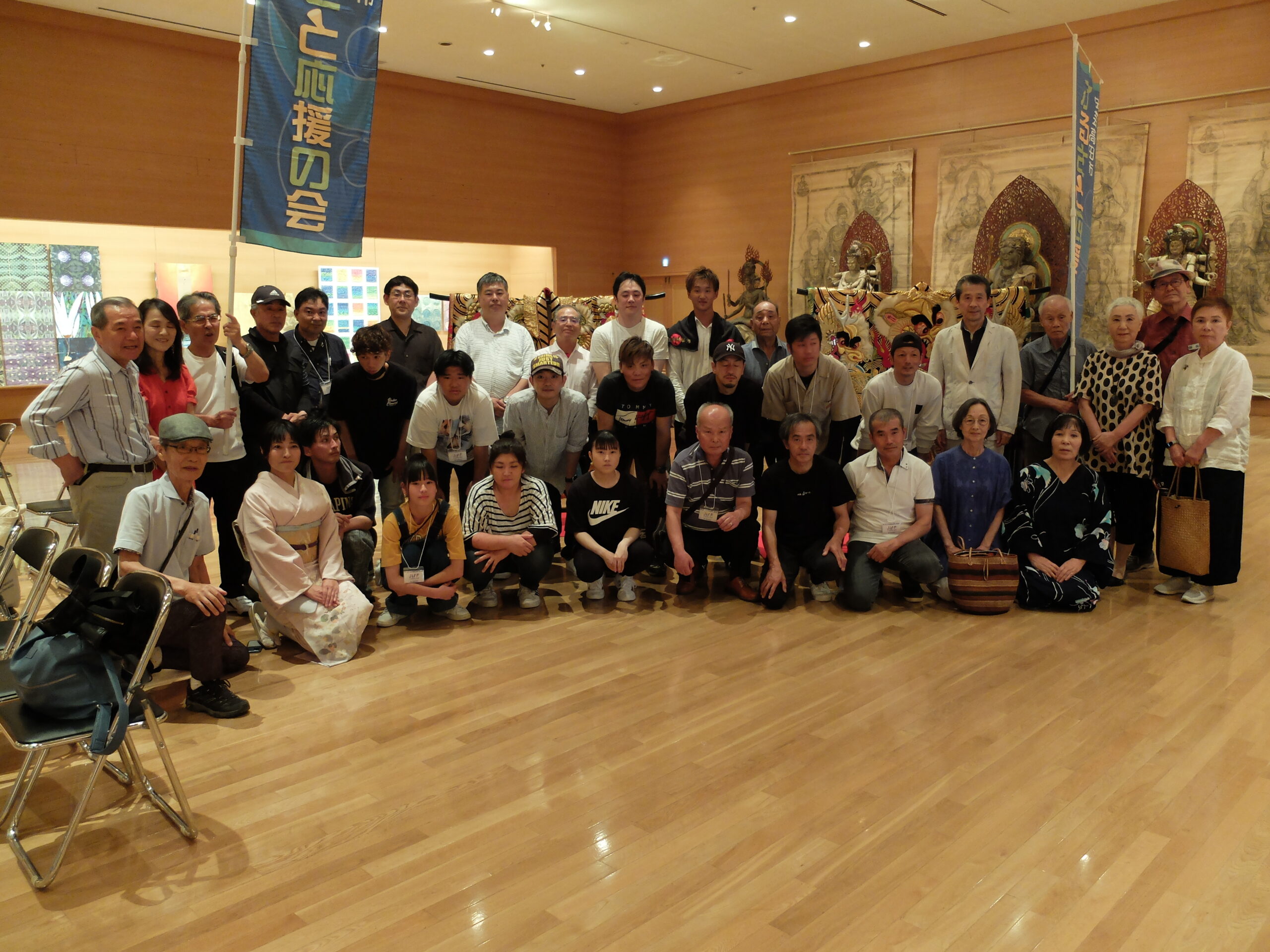 公演終了後には会場で応援の会メンバーと神楽団のみなさんで写真撮影を行い、華麗なふるさとの伝統を披露してくださったみなさんをねぎらいました。