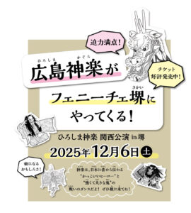 2025年12月6日(土)にフェニーチェ堺で開催される神楽(かぐら)公演のPRブースが堺まつりに出展されます。