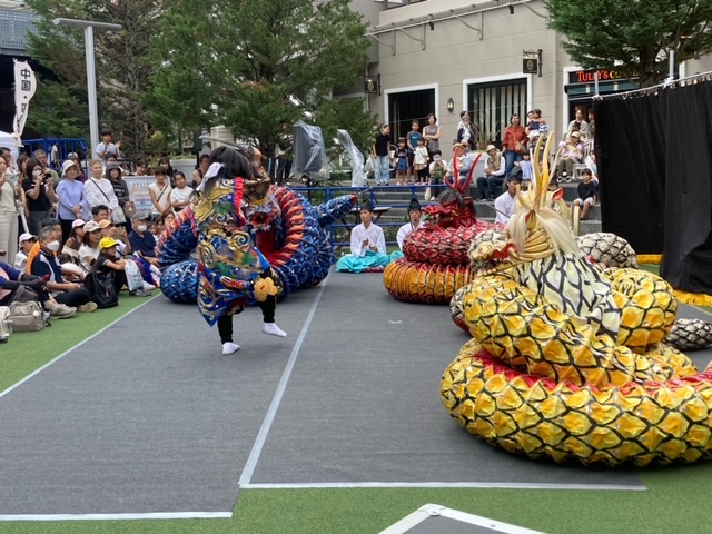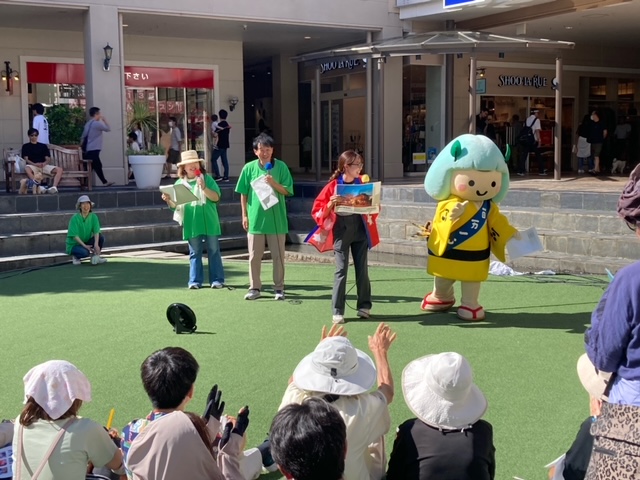 大阪府箕面市箕面キューズモールイベント広場で中四国9県観光物産展が開催されました。広島県ブースは安芸高田市高宮町の川根柚子協同組合様が出店されました。ふるさと応援の会関西地区役員有志で販売のお手伝いをしました。特産品のゆずバターケーキ、ゆずスカッシュが大人気で売上目標も初日でクリアー。2日目は雨の影響でそこそこの売上3日目は11時から安芸高田神楽八岐大蛇(ミニ版)をイベントコーナーで舞われました。羽佐竹神楽団の団員の方には短時間では有りましたがご協力頂き安芸高田市のアピールに貢献されました。