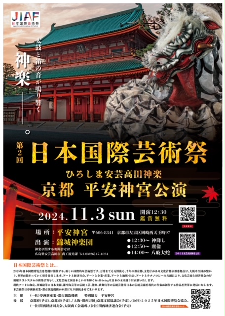 次は11月3日(日)第2回日本国際芸術祭ひろしま安芸高田神楽京都平安神宮公演です。